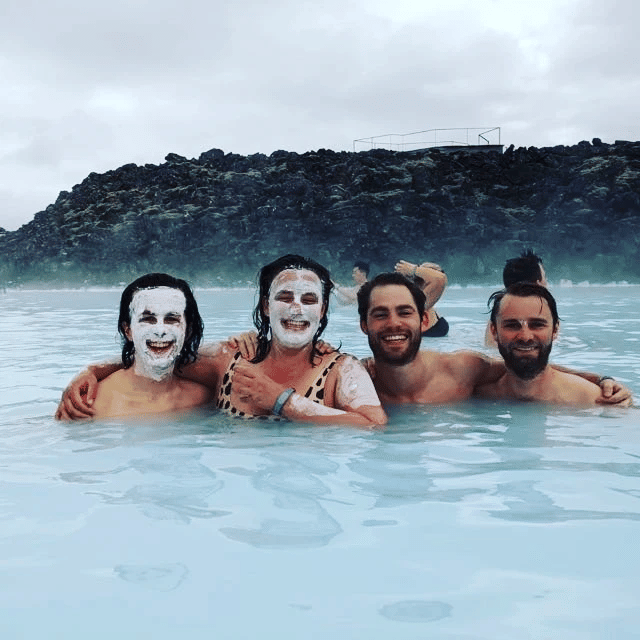 Researcher Henry, Hosts Emily and Tom, and Producer Ben enjoying themselves at 'The Blue Lagoon' in Iceland!